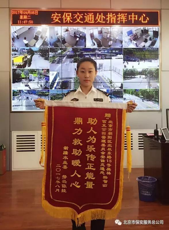 9月4日上午,奧林匹克公園管理委員會(huì)安保交通處收到了遠(yuǎn)在千里之外的新疆木壘縣努熱依拉女士寄來的錦旗和感謝信。感謝朝陽保安分公司駐奧林匹克公園安檢隊(duì)女隊(duì)長韓智茹以實(shí)際行動(dòng)傳遞的正能量,溫暖了千里之外那一顆顆焦灼不安的心。