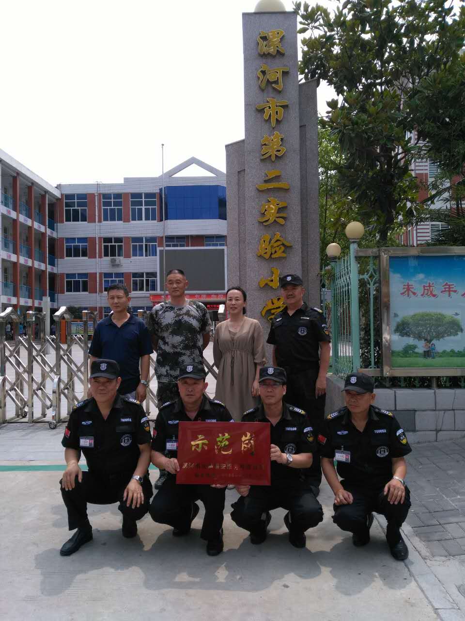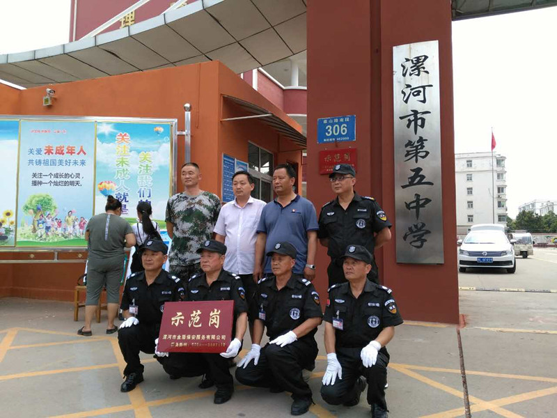 金盾保安公司副總經(jīng)理吳清旺同志代表公司總經(jīng)理?xiàng)瞰I(xiàn)軍同志攜公司督察隊(duì),邀請(qǐng)市電視臺(tái)領(lǐng)導(dǎo),五一路小學(xué)校領(lǐng)導(dǎo)、市新五中校領(lǐng)導(dǎo)參加“示范崗”授牌儀式,依據(jù)“示范崗”標(biāo)準(zhǔn)及走訪客戶(hù)單位了解工作情況,公司領(lǐng)導(dǎo)研究決定: