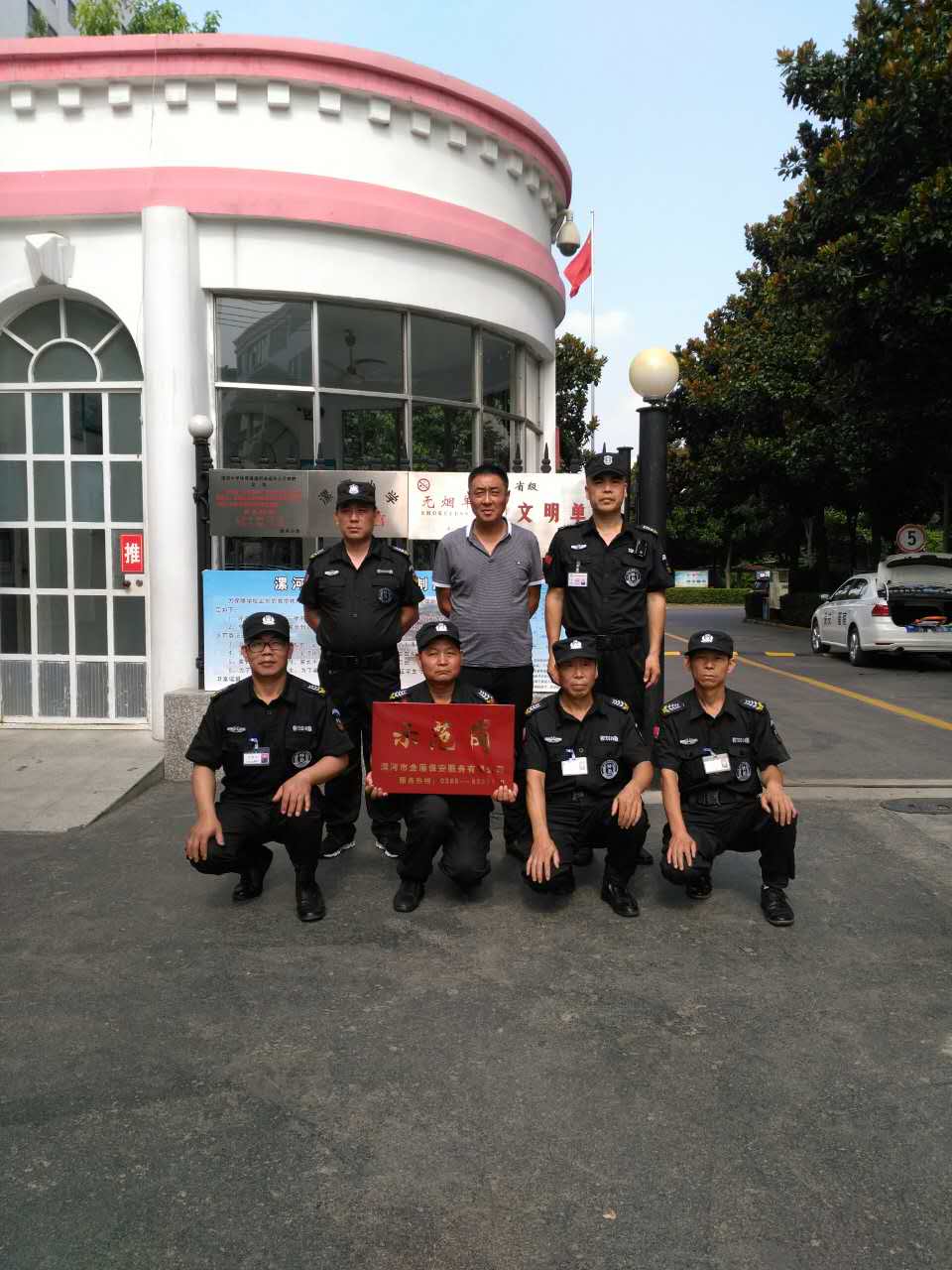漯河金盾保安公司副總經(jīng)理劉文太同志代表公司總經(jīng)理?xiàng)瞰I(xiàn)軍同志攜公司督察隊(duì),邀請(qǐng)雪健面粉廠辦公室主任,市檢察院領(lǐng)導(dǎo)、漯河小學(xué)副校長(zhǎng)參加“示范崗”授牌儀式,依據(jù)“示范崗”標(biāo)準(zhǔn)及走訪客戶(hù)單位了解工作情況,公司領(lǐng)導(dǎo)研究決定: