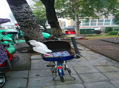 10月2日上午11點(diǎn)左右,在交通路沙河大橋西側(cè)南岸的保安執(zhí)勤崗?fù)?,記者看到了這只受傷的白鷺。白鷺站在巡邏自行車的尾箱上,身高約30厘米,左側(cè)翅膀因?yàn)橛袀抢?,看起?lái)很沒(méi)有精神。