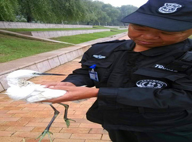 ?10月2日上午,在漯河市區(qū)交通路沙河大橋西側(cè)沙澧河風(fēng)景區(qū),正在執(zhí)勤的漯河市金盾保安服務(wù)有限公司保安員王立勤、陳海福發(fā)現(xiàn)河邊草叢內(nèi)有一只受傷的幼鳥,及時(shí)把它救上岸后悉心照看。記者聯(lián)系市野生動(dòng)物救護(hù)中心得知,這只鳥是剛出生的白鷺幼鳥,當(dāng)天早上就曾被救助過(guò),翅膀上的傷口正在愈合。