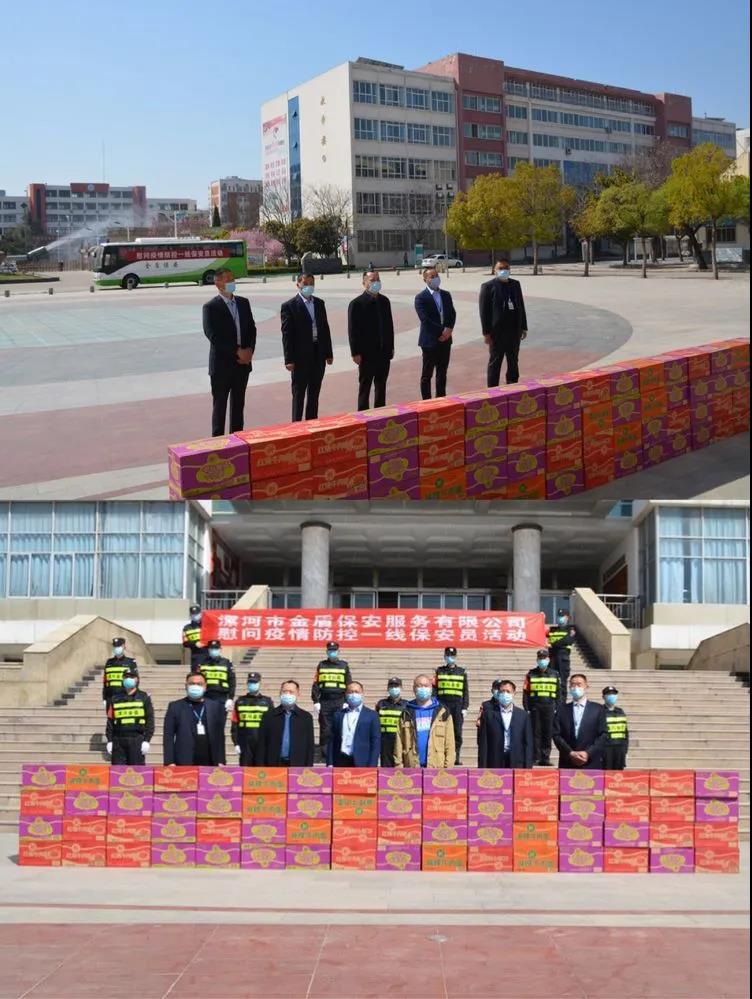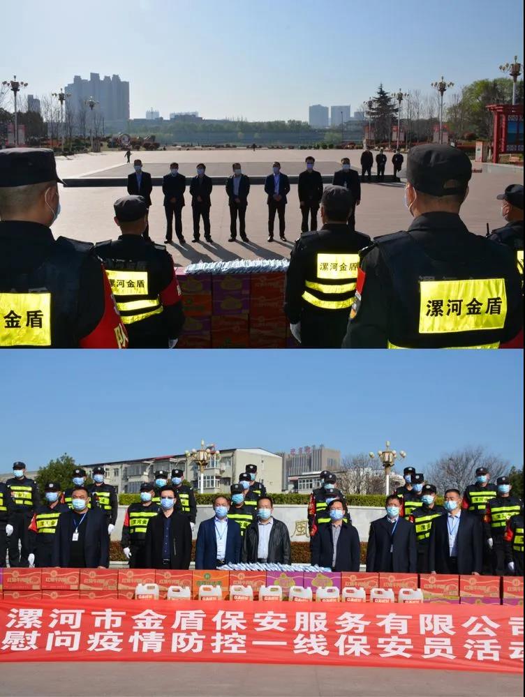 ▼漯河職業(yè)技術(shù)學(xué)院保衛(wèi)處處長(zhǎng)王洪克,科長(zhǎng)牛春雨與公司領(lǐng)導(dǎo)班子共同慰問堅(jiān)守在疫情防控一線的保安員代表。