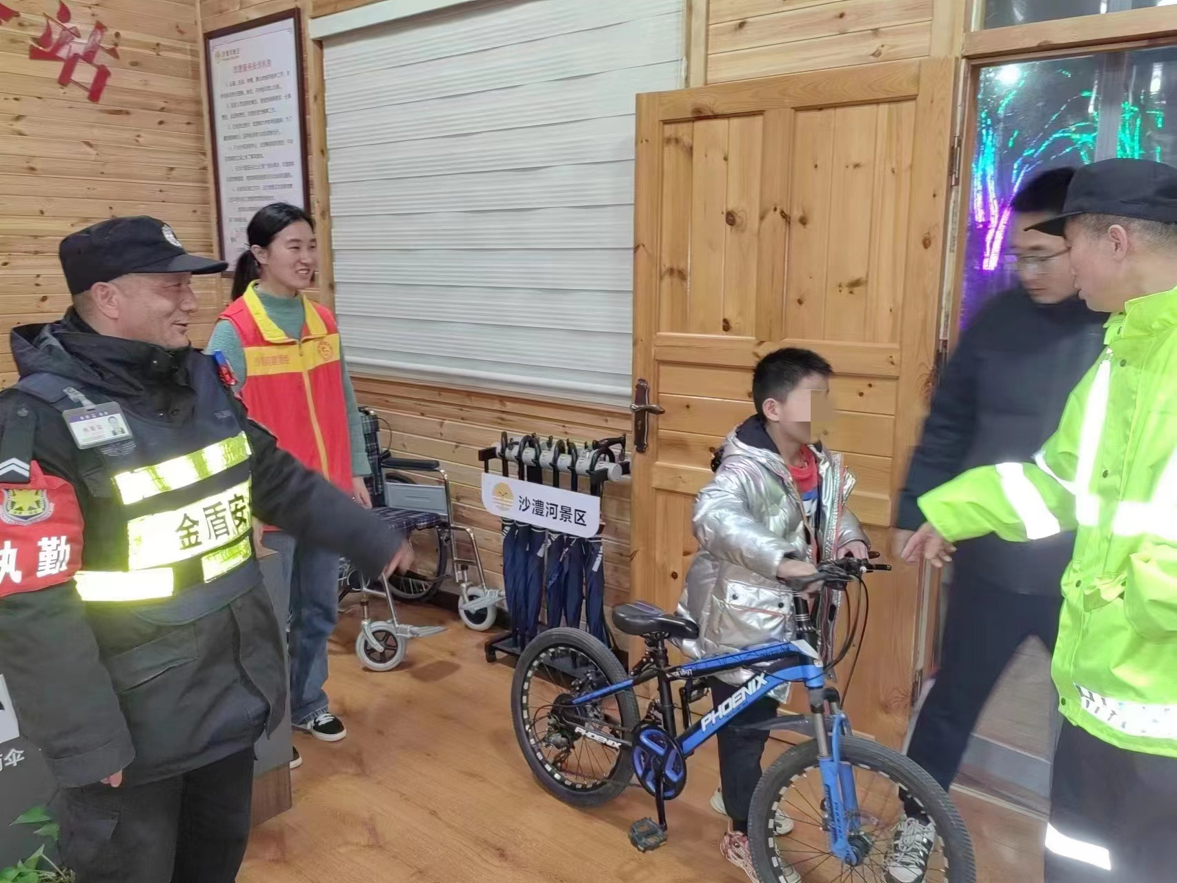 1月31日晚上八點半,漯河市沙澧河風(fēng)景區(qū)保安員陳偉和陳海福正在紅楓廣場執(zhí)勤,突然發(fā)現(xiàn)一名小朋友在路邊著急的哭泣。見此情況,陳偉和陳海福立即跑到男孩身邊,安撫他的情緒,并將其安全帶到游客服務(wù)中心,耐心與其交流,經(jīng)了解得知原來是男孩在此游玩與家人走散了。在穩(wěn)定小孩不安的情緒后,陳海福詢問出其家長的電話號碼并成功聯(lián)系上孩子的親屬。隨后,男孩的母親趕到現(xiàn)場,在詳細(xì)核實信息并經(jīng)小孩確認(rèn)后,保安將孩子交給家屬。當(dāng)看到孩子安然無恙,孩子母親激動地連聲道謝。幾天后,男孩的爸爸還送來一面錦旗向我公司保安員表達了由衷的感謝。