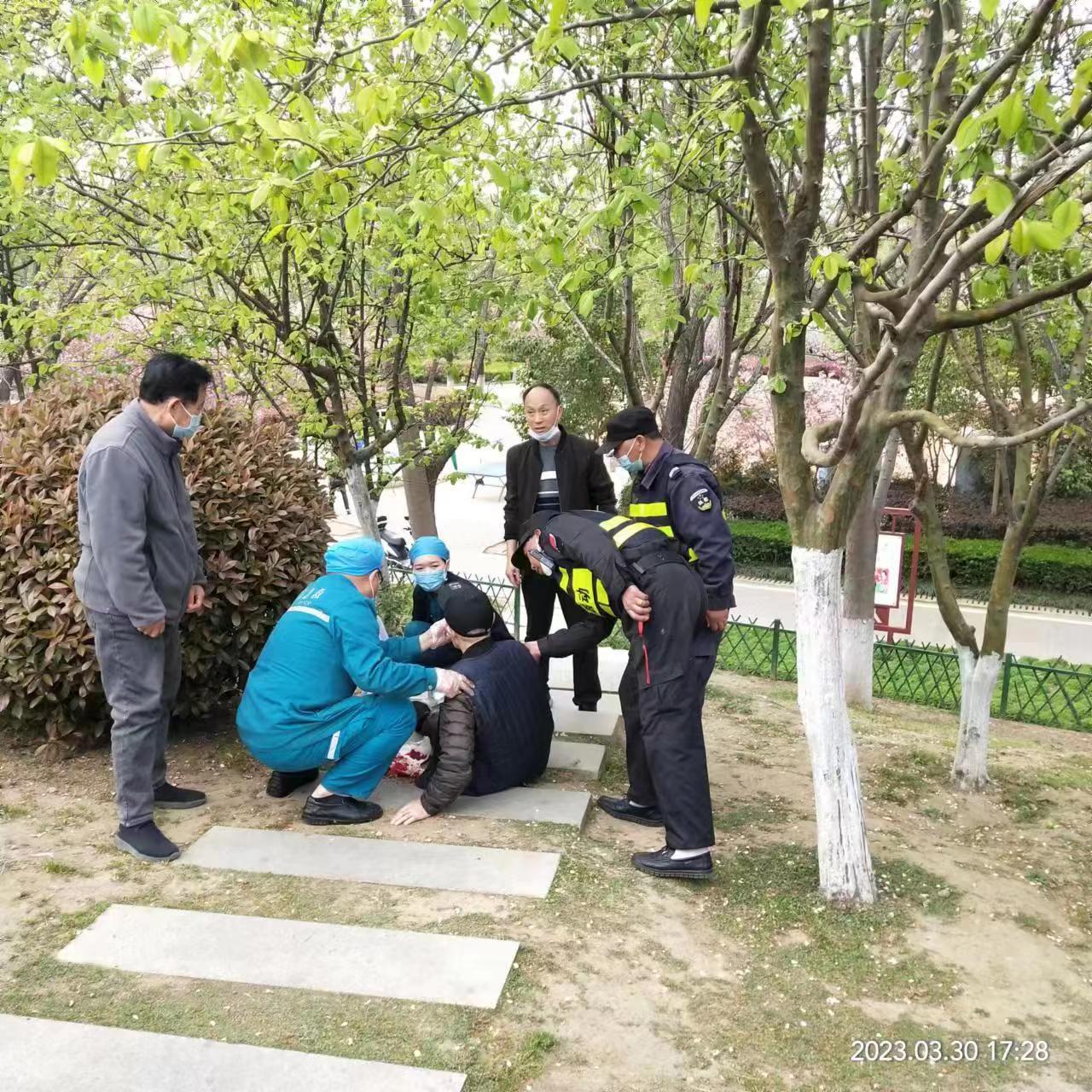 3月30日下午,一位70多歲的老人在漯河市沙澧河風(fēng)景區(qū)老虎灘公園下臺階時(shí)不慎摔倒。此時(shí),正在附近巡邏的我公司分隊(duì)長成戰(zhàn)攻,突然發(fā)現(xiàn)這位老人滿臉是血癱坐在地,就趕緊上前詢問并立即拔打120急救電話。